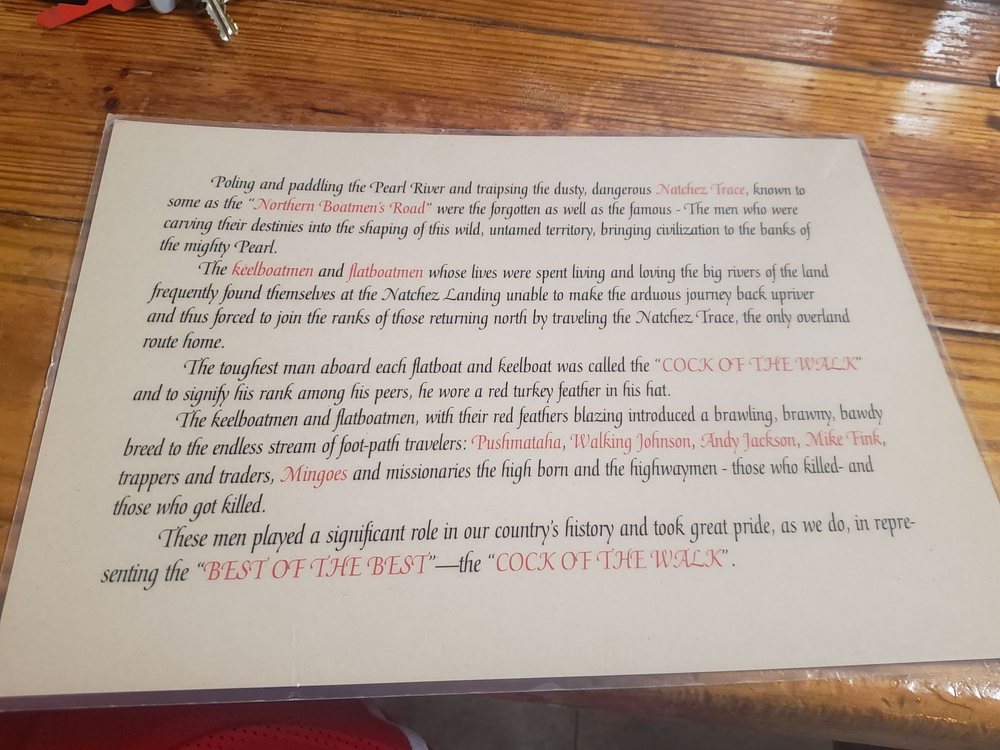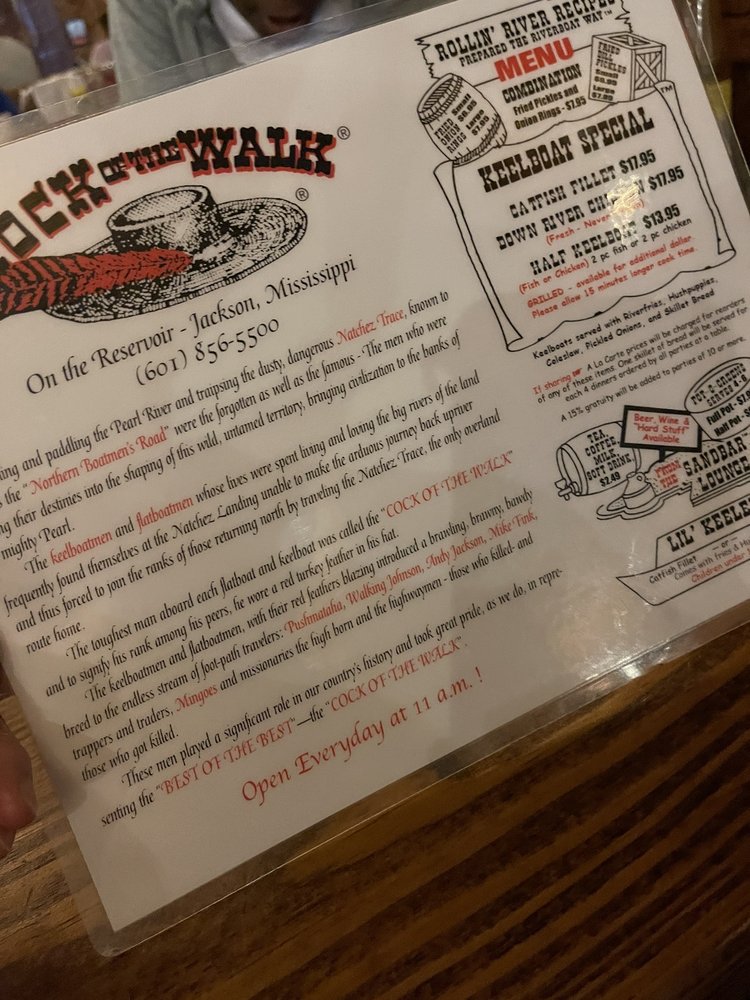 Welcome to COCK OF THE WALK, where southern comfort food reigns supreme in Jackson, MS. Nestled alongside the river, this charming eatery specializes in a limited menu that delivers deliciousness with every bite. Diners rave about their Fried Dill Pickles, served with a zesty ranch dressing, and the star of the show, Fried Down River Chicken, which arrives with river fries, hushpuppies, and coleslaw for just $21.29.